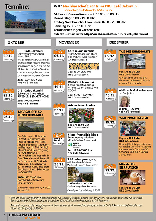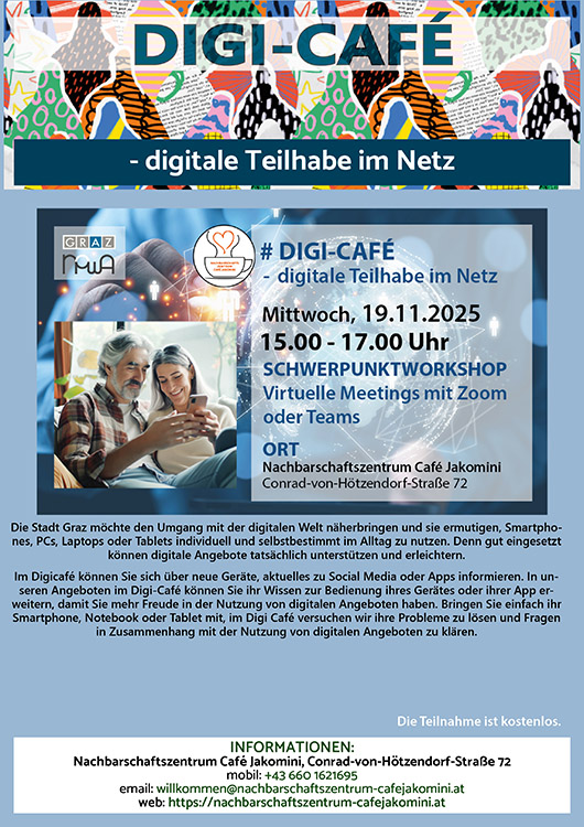 Infos zum Nachbarschaftszentrum Café Jakomini unter: